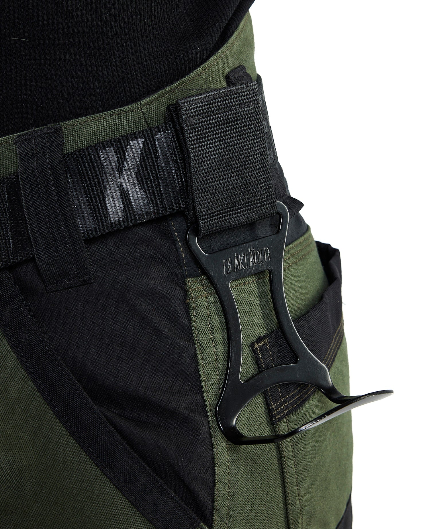 A smart, functional adapter plate designed for use with Blåkläder trousers featuring the new click button fastening system. This versatile adapter also includes a belt loop, making it easy to attach and remove tools as needed.