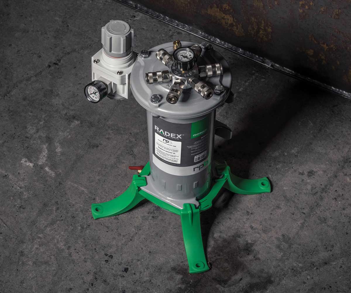 The Radex is fitted with a large capacity, 6-stage filter cartridge that removes moisture, odor and particulates to 0.5 micron from the compressed air stream, providing clean, breathable air. With a unique twist-and-lock wall and floor mounting system, the Radex is adaptable to all workplaces.