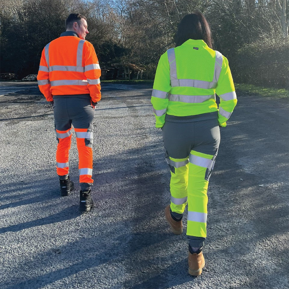 Leo Workwear HAWKRIDGE Leo EcoViz High Performance 4X Stretch Trouser- Hi-Vis Yellow/Grey